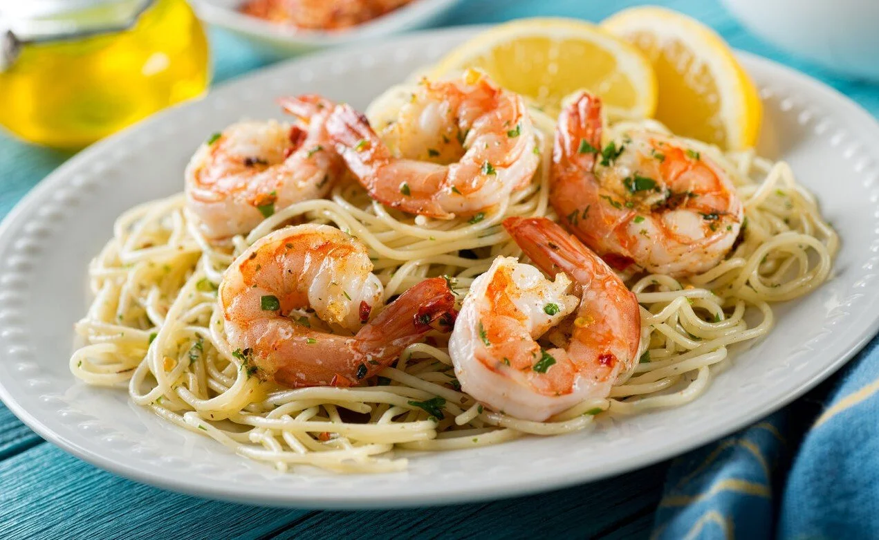 MEALS IN MOTION › Shrimp Scampi w/ GF Pasta, Tomato Compote and Roasted Broccoli Image 1 of 1 Shrimp Scampi w/ GF Pasta, Tomato Compote and Roasted Broccoli $12.00 Add To Cart Added!